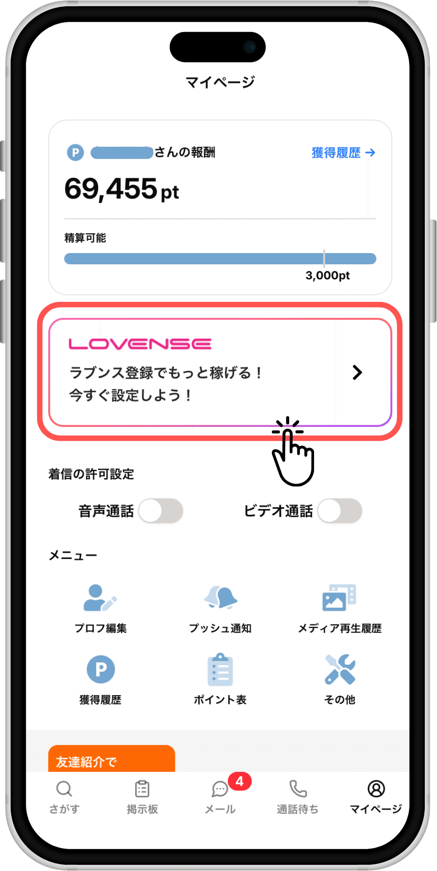 メニューの「もっと稼ぐ→LOVENSE遠隔操作おもちゃ」の部分にバーコードがあります。