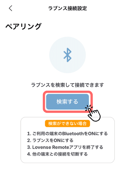 「検索する」ボタンででLOVENSEと接続すればOK!めっちゃ簡単。